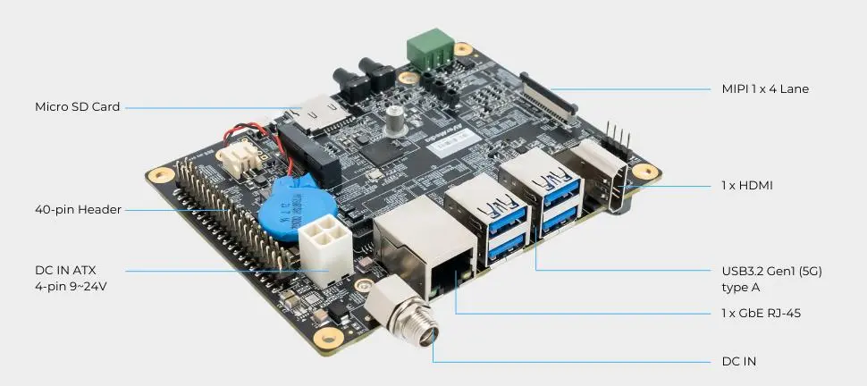 | Expansion Header | 1xCAN with transceiver (3-pin terminal block), 1xOOB supported by Allxon, 40-pin: 1x UART, 2x SPI, 2x 12C, 1x I2S, 6x GPIOs |