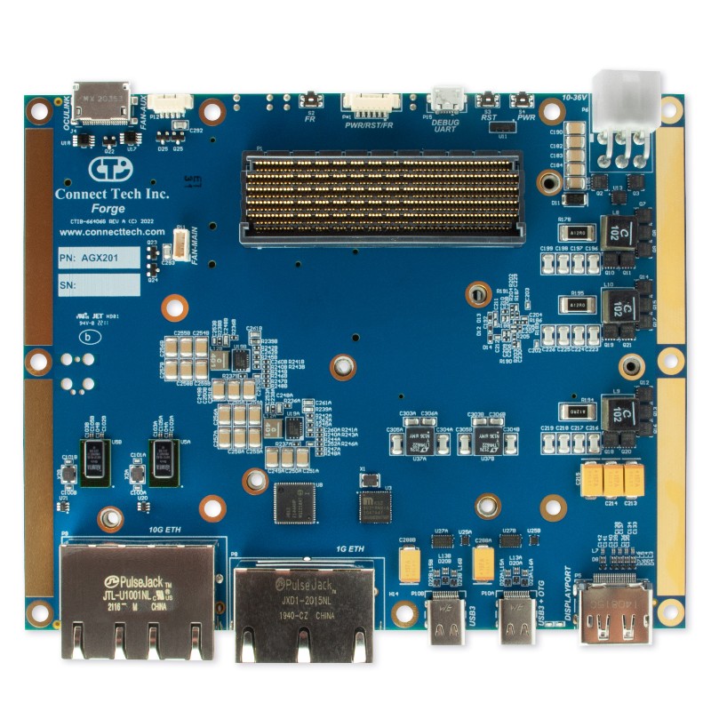 Forge is a fully featured carrier board manufactured by Connect Tech for the NVIDIA® Jetson AGX Orgin™ module. This carrier board for Jetson AGX Orin™ is specifically designed for commercially viable platforms (suitable for field use).