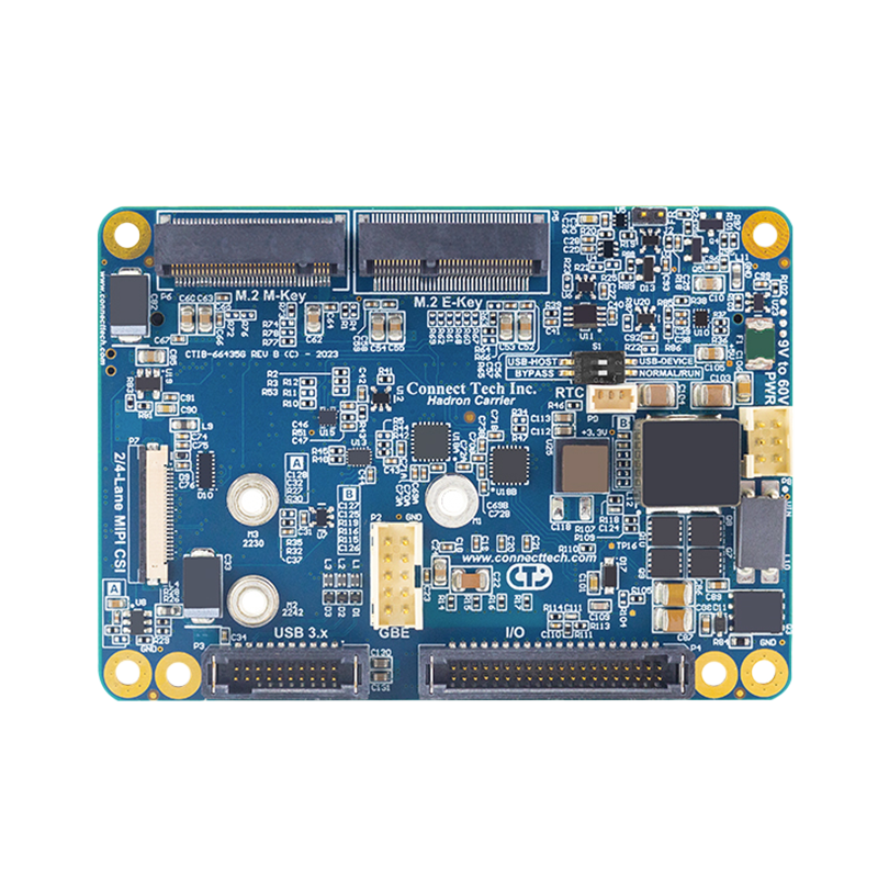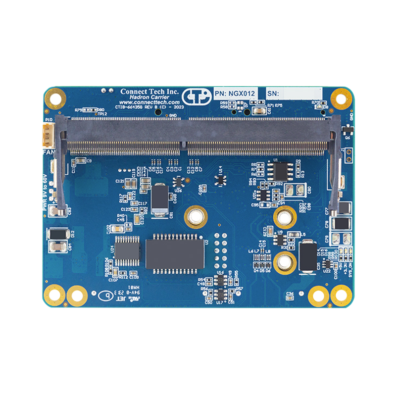 The Connect Tech Hadron Carrier is an ultra-small, fully featured carrier board compatible with NVIDIA Jetson Orin Nano, Orin NX, Xavier NX, and TX2 NX modules. This carrier board is only slightly larger than an NVIDIA Jetson SODIMM module, making it suitable for use in industrial application environments.