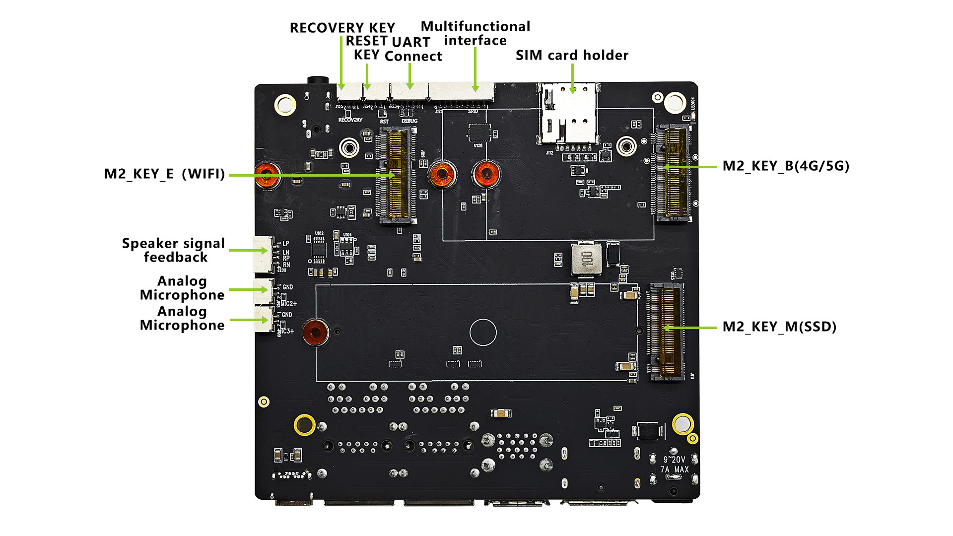 | Multifunctional port | 1x DEBUG, 1x POWER, 1x RECOVERY, 1x RESET, 1x SPI, 2x IIC, 2x UART, 7x IO 3.3V |