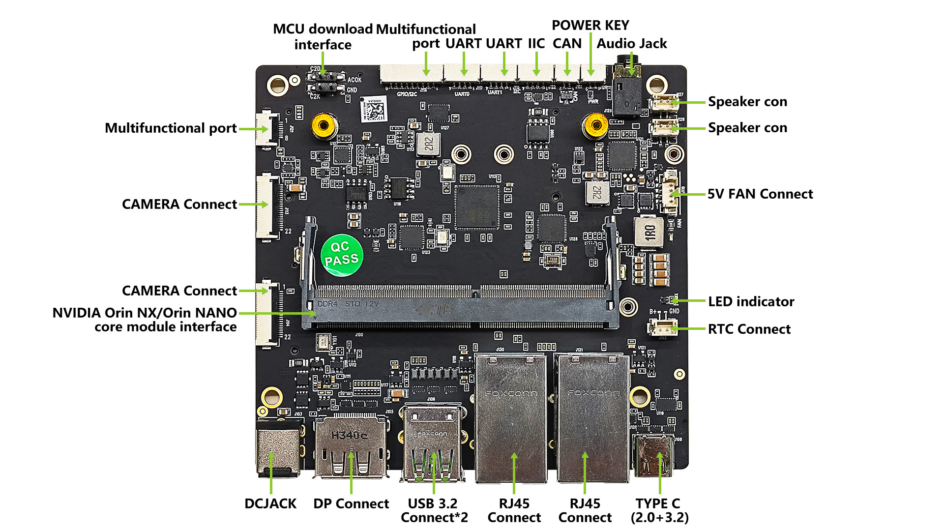 Fundamentally, it works in combination with an NVIDIA module to develop AI applications. When equipped with an NVIDIA Jetson Orin Nano/Orin NX module, it supports NVIDIA JetPack, which includes deep learning, computer vision, and GPU computing libraries such as BSP, Linux OS, NVIDIA CUDA, cuDNN, and TensorRT.